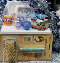 box contenente alimenti giochi ed accessori per gatti da regalare al vostro gatto oppure ad amici che amano i gatti .